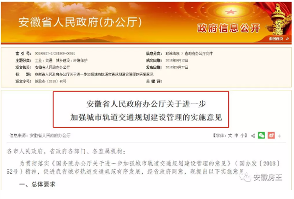 9月27日,《安徽省人民政府办公厅关于进一步加强城市轨道交通规划建设管理的实施意见》对外发发布,对地铁建设提出明确的“门槛”。